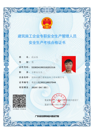 合格证书